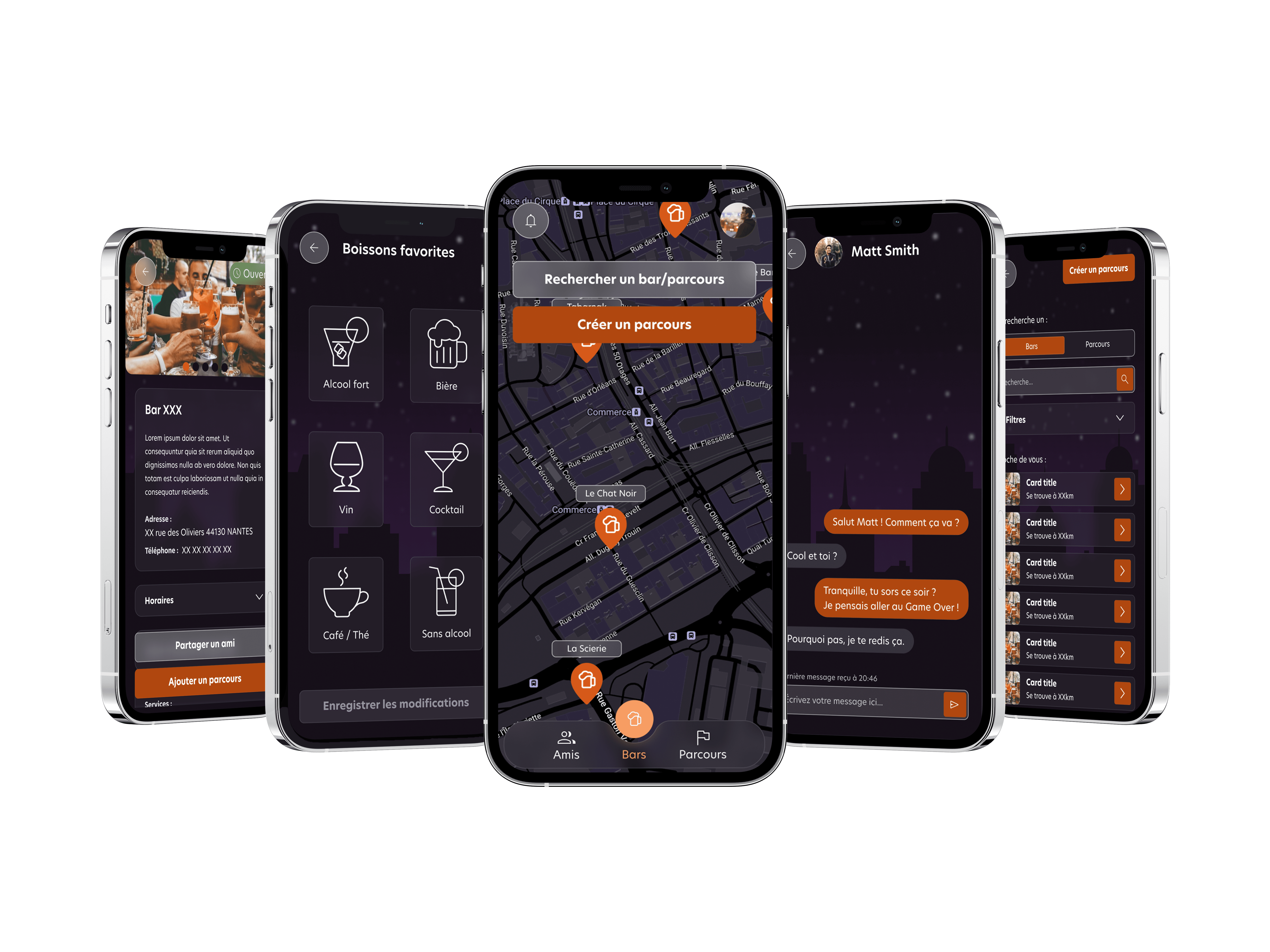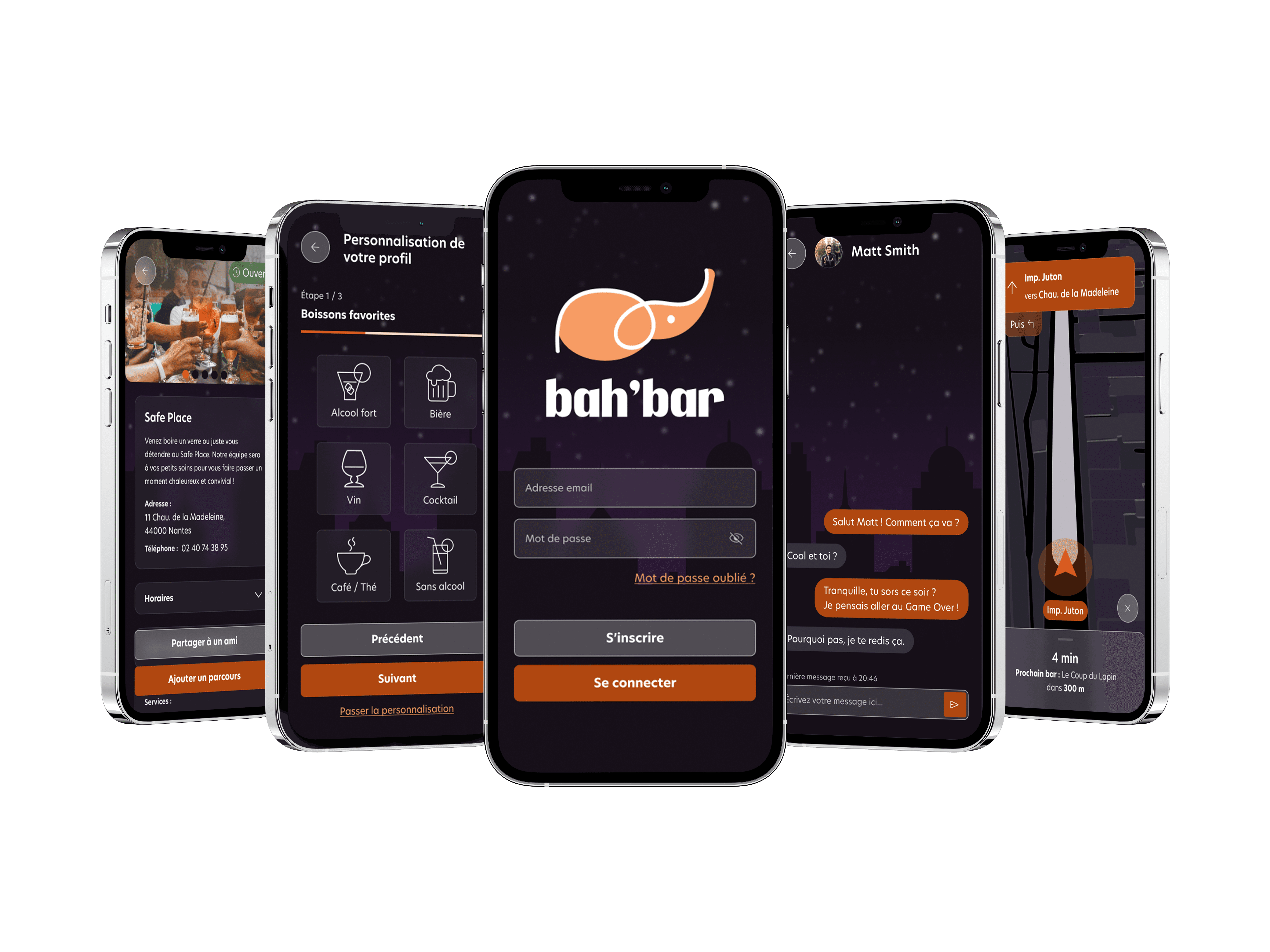 Sur Bah’bar, j’ai conçu l’expérience et l’identité visuelle d’une appli aidant les Nantais à découvrir de nouveaux bars. J’ai repensé le parcours utilisateur pour rendre la découverte fluide et personnalisée, tout en limitant les biais liés à la consommation d’alcool. J’ai créé une interface claire, modulaire et responsive, optimisée pour mobile et desktop. Mon travail sur l’UI a renforcé la cohérence visuelle et l’envie d’exploration. Le résultat : une expérience sociale intuitive, engageante et visuellement marquante.